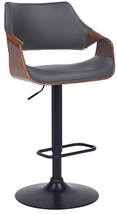 The Aspen Stool is available in your choice of a black base with black or grey faux leather upholstery or a chrome base with cream or grey faux leather upholstery with walnut wood accents.