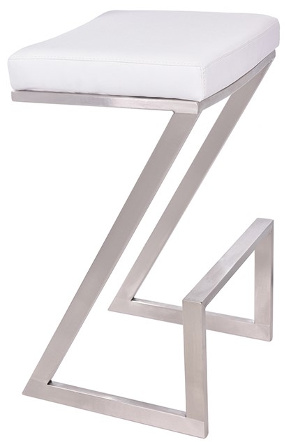 This stylish Atlantis barstool features brushed stainless steel sled legs that offer exceptional durability while adding a novel touch to the standard barstool design. The Atlantis features a plush upholstered seat that is certain to provide one with comfort. The Atlantis's compact and practical design makes it great as additional seating around the house. The Atlantis comes in two sizes, 26 inch counter and 30 inch bar height and is available in a variety of styles including: bandero tobacco fabric as well as gray, black, and white faux leather. Excellent choice for a contemporary dining setting.