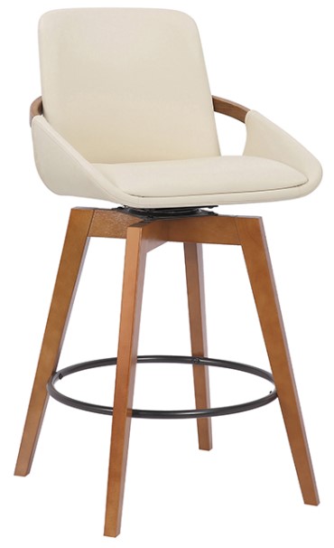 The Baylor Counter Height Stool frame and legs are crafted with sturdy and durable wood, giving you years of enjoyment. This bar stool features a 360-degree swivel function which increases mobility for a greater user experience. The sleek, smooth lines featured throughout the body of this bar or counter height chair combined with the look of the soft faux leather upholstery create harmony throughout this piece. This stool also includes a circular metal footrest, which is both visually appealing and practical for the design. The Baylor Bar or Counter Height Stool is available in 26-inch counter height and 30-inch bar height. Also available in your choice of cream or gray faux leather with walnut wood finish or black brushed wood finish. Excellent choice for a contemporary dining setting.