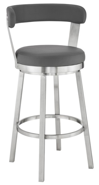 The plush and thick foam-padded cushion of Bryant Swivel Counter Height Stool will allow you and your guests to relax in comfort for extended periods of time without issue. The Bryant was crafted with high-quality steel, able to withstand everyday wear and tear, giving you years of enjoyment. This versatile stool can easily blend into any modern kitchen or contemporary household. The Bryant bar stool comes in several colors and finishes color choice of black and gray faux leather with black finish, or black, gray, and white faux leather with brushed stainless-steel finish. All choices are also available in your choice of 26” counter height and 30” bar height.
