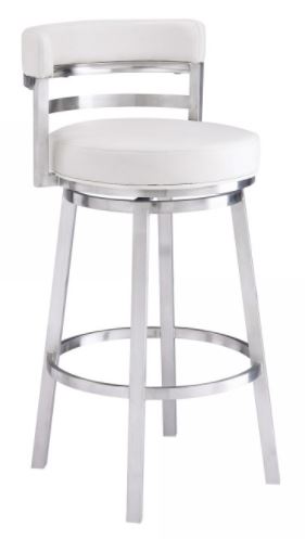 Highly recommended for any commercial setting such as offices, schools, restaurants, training centers, and reception area. The Armen Living Madrid armless barstool features a unique aesthetic that is certain to work well in any modern household. The Madrid’s durable brushed stainless steel frame is accompanied beautifully by its white faux leather.Read More