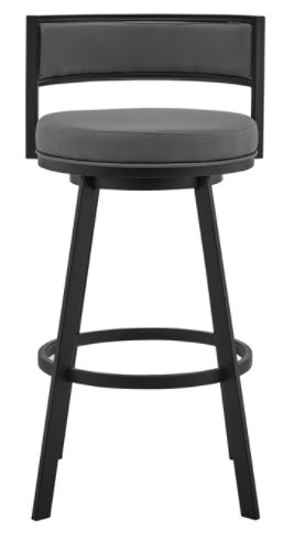 The Roman was crafted with a durable steel frame; easy to take care of and clean, this stool will give you excellent use for years to come. The faux leather upholstery is luxuriously wrapped around the frame of this stool, adding yet another wonderful feature. The Roman also features a convenient metal footrest, for additional support and stability. This stool comes in your color choice of gray faux leather with a brushed stainless-steel frame or gray faux leather with a Black powder-coated frame. Also available in your choice of 26” counter height and 30” bar height.