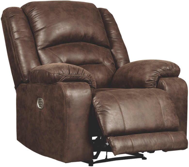 The Carrarse power recliner in teak brown really is designed to caress you in comfort from head to toe. Offering the warm feel of fabric and the cool look of leather, this power recliner includes Easy View™ power adjustable headrest and power lumbar support that lets you fully recline and still have a primo view of the TV.Read More