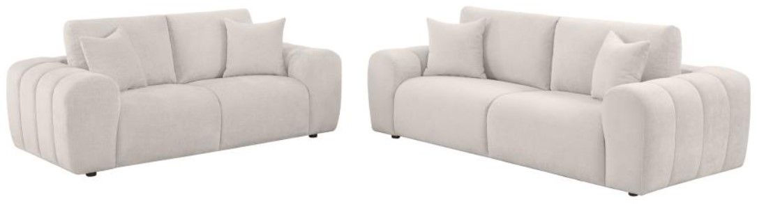 This sculptural sofa set blends soft curves with modern simplicity for a cozy, elevated lounge experience. Each piece is wrapped in richly textured fabric and designed with a low-profile frame, rounded edges, and wide track arms that invite you to unwind.Read More