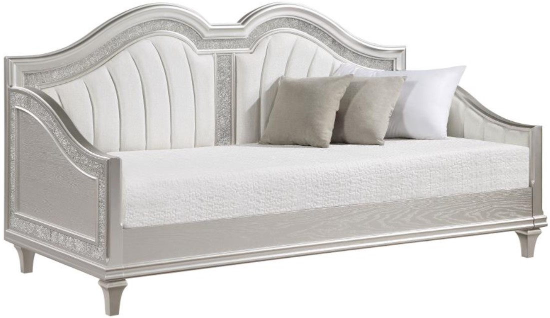 This luxurious daybed from the Evangeline collection is perfect for accommodating overnight guests or creating functional small spaces. Its eye-catching and versatile design, with a curved silhouette and faux diamond trim, adds a touch of elegance to any room.Read More