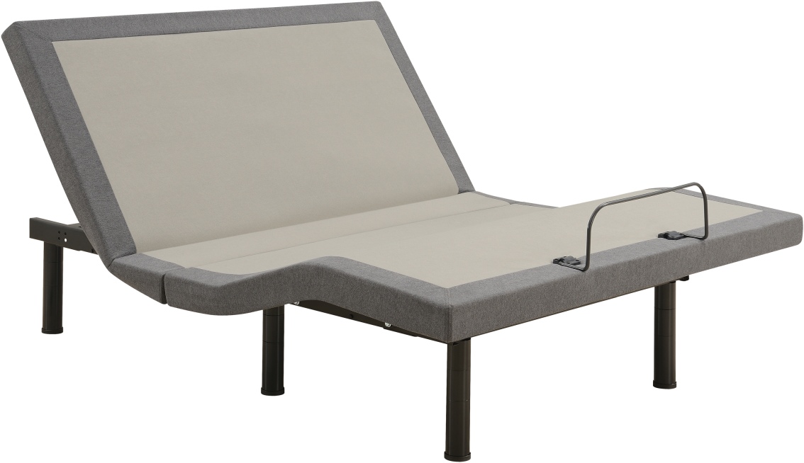 Revitalize yourself each and every night with this stunning multifunctional adjustable bed base with grey fabric trim and adjustable or removable legs. The bed base delivers the latest in modern technology with dual massage function on the head and foot of the bed, with three levels of intensity for optimal relaxation. The bed is equipped with a wireless remote that's backlit and gives full control of the height of the head and foot of the bed and includes presets for a most comfortable night's sleep. Each side of the bed is equipped with a dual USB port perfect for keeping bedside electronics charged and ready to use. You can even control the bed from your phone with Bluetooth connectivity and the Coaster app installed on your smart device.