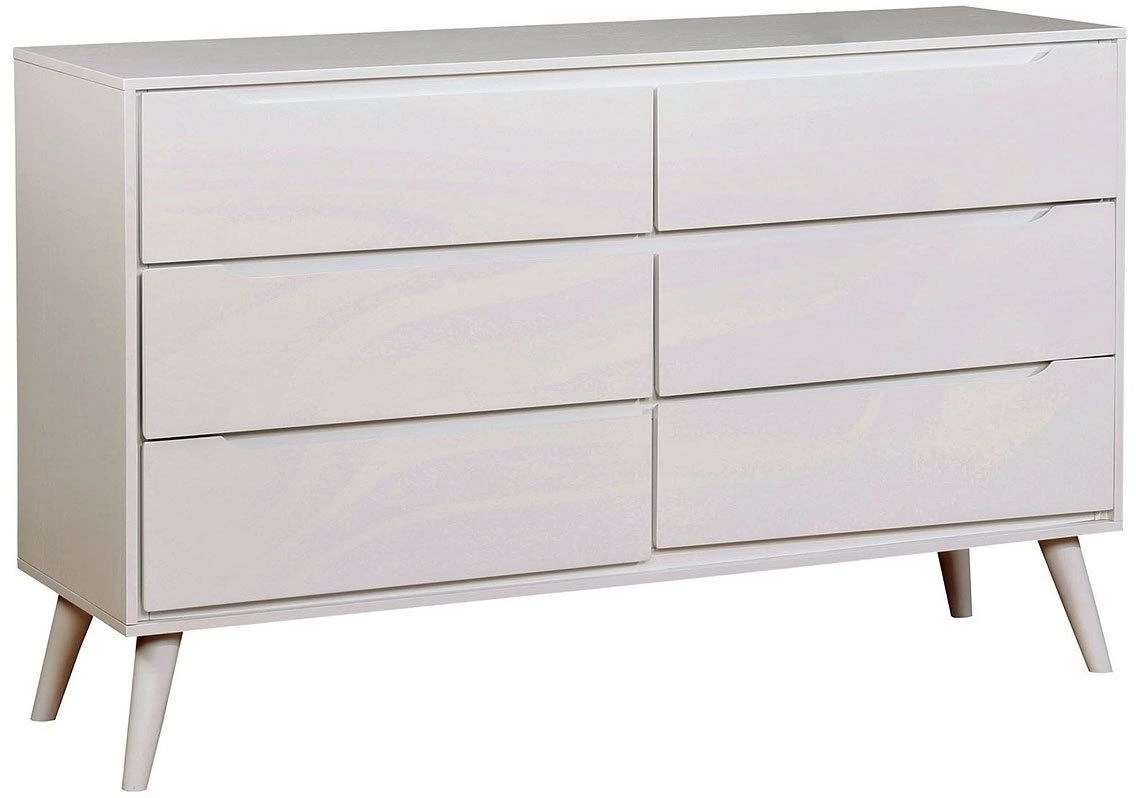 For a quick modern update to your home, this collection will add that trendy mid-century appeal. Coordinating case goods such as this dresser boast slim flared legs and recessed handle drawer pulls.Read More