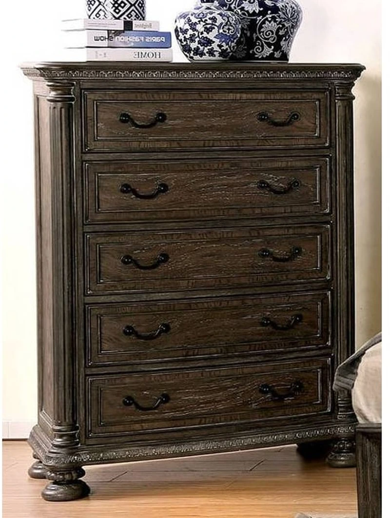 Furniture of America® Persephone Chest with fluted corners and felt-lined top drawers. This ornately-carved chest pair beautifully with its matching bed collection.Read More
