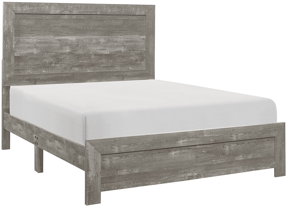 Modern lines and rustic styling are paired to create the look of the Corbin Collection. The 3D printed paper veneer’s texture is highlighted by a gray finish for a realistic wood look. Subtle framing defines the profile of the full size panel headboard and footboard, further lending to the unfettered design of the collection.Read More