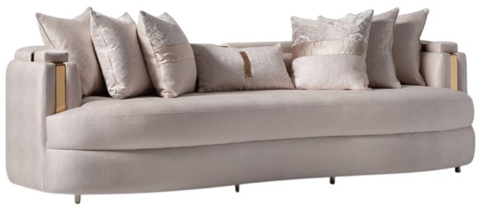 Fall in love with the grandeur of the Carmela mansion sofa - a true masterpiece that exudes understated elegance and romantic charm. This majestic sofa is covered in a subtle jacquard fabric, beautifully accented with titanium gold metal band arms and stunning decorative pillows.Read More