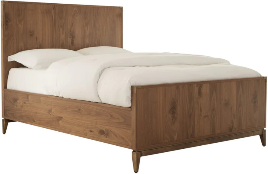 Solid wood frame, wood veneer headboard and footboard panels, plywood side rails, bed slats