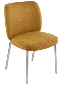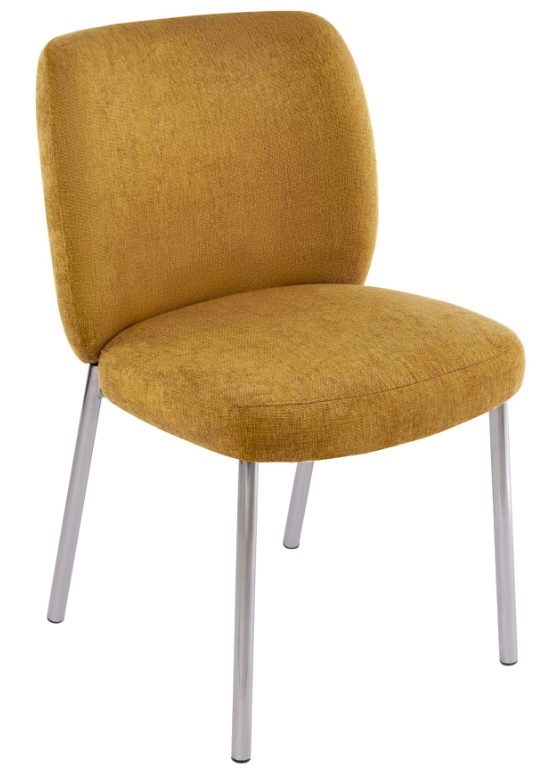 Plush and shapely upholstered seating is available in a choice of bold colors with modern polished stainless steel legs that complete the look.