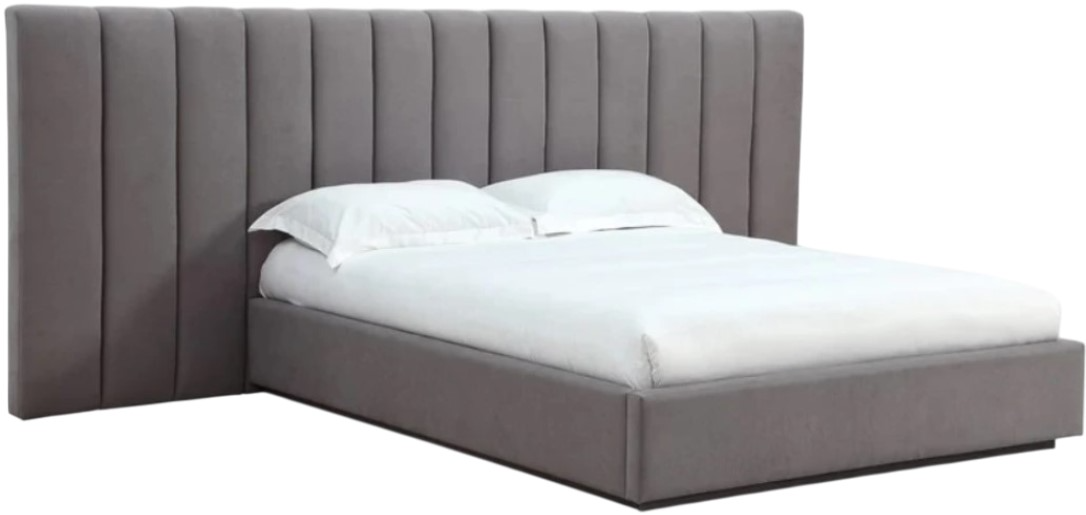 The Monty bed is a combination of staggered block elements, from the floating plinth base to the platform bed frame and the oversize headboard panel. Accented with deep vertical channeling and wrapped in a plush low maintenance gray velvet, this bed blends seamlessly into both contemporary and mid-century modern decor.Read More