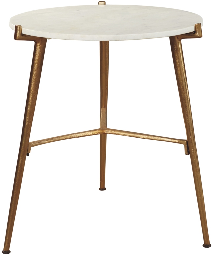Take a stance for clean, contemporary style with this accent table. Its round white marble top is paired with an antiqued goldtone tripod base. The result: an ultra-rich aesthetic priced to entice.Read More