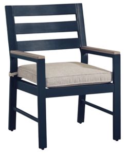 Easy-breezy beauty, made to withstand the elements. This outdoor arm chair makes a serene statement on your deck or patio with its soothing shade of blue and contrasting wood-look arms. A cushioned seat keeps you comfy as you lounge.Read More