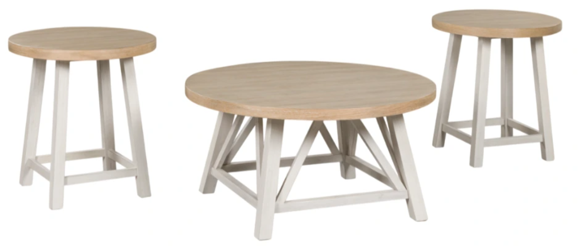Invite easy-breezy style in with this occasional table set. Complete with a coffee table and matching end tables, the stylish two-tone set fits right into modern farmhouse and coastal settings. Simply stage and arrange around your existing furniture—their rounded design pairs well with smaller sofas and sectionals, so you can make the most of your space.Read More