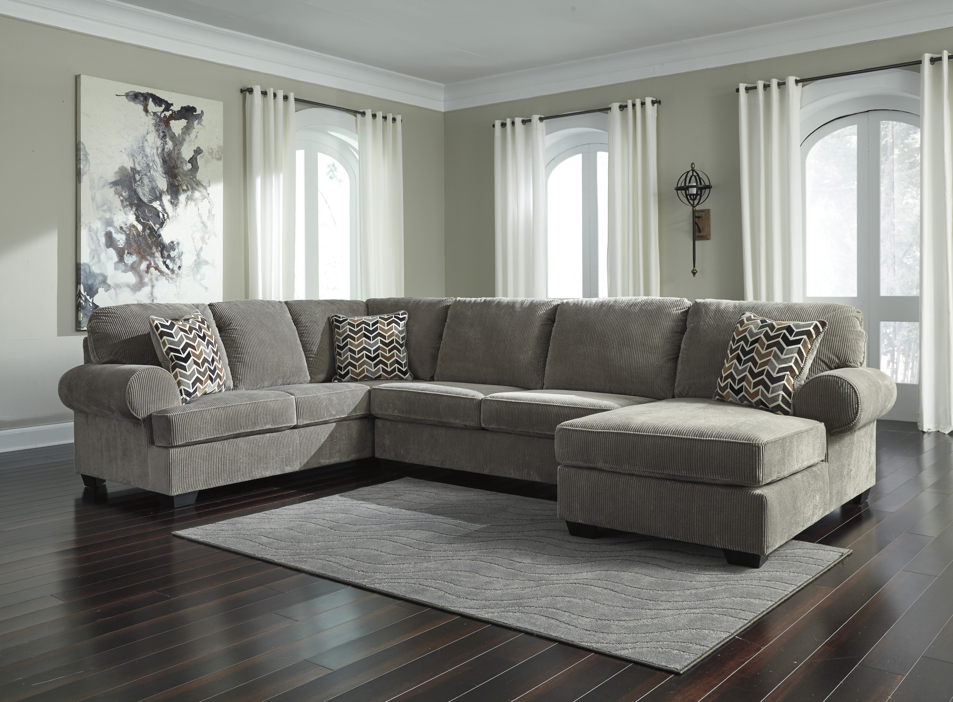 Signature Design by Ashley® Jinllingsly Left Arm Facing Sofa features rolled arms, 2 pillows, and 3 loose seat cushions.Read More