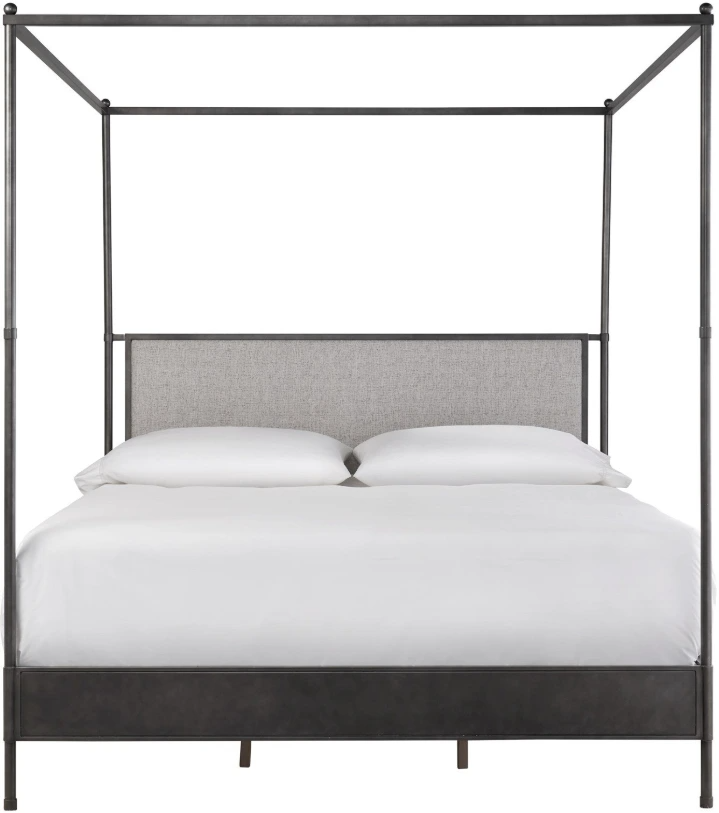An updated take on farmhouse style, the Universal Explore Home™ Kent poster bed features a sleek metal frame and a luxe upholstered headboard, bringing an abundance of sophistication to any bedroom space.Read More