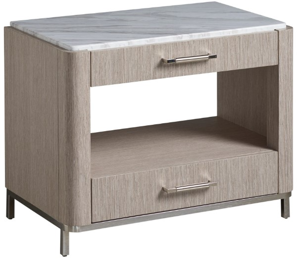The Soren bedside table is a gorgeous marriage of texture and materials, featuring a stone top, sleek bar hardware and a metal base. It includes two spacious drawers and one open-air display shelf.Read More